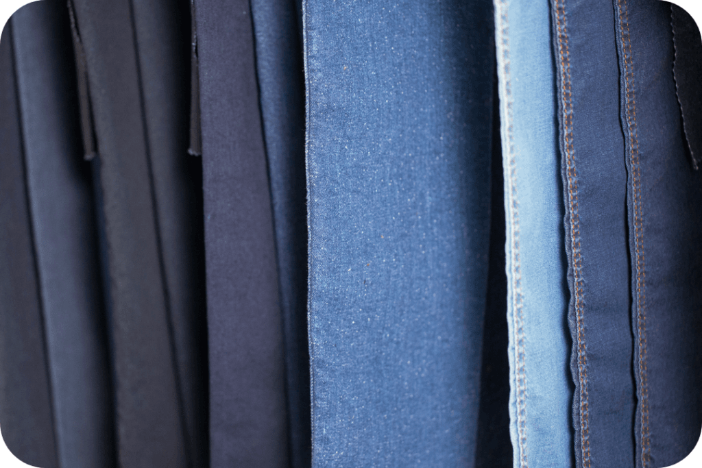One of the fabric categories is denim, there are a few different types! You’ve got rigid denim, the not-stretchy classic. Then you have comfort stretch, which is a bit of wiggle room, and then super stretch, which is quite comfortable and flexible. Some denim is shrink to fit, which means it will shrink when you wash it, so keep that in mind! Lastly, PFGD stands for ‘Prepared For Garment Dyeing’ – denim that is ready to be dyed in almost any color you want.